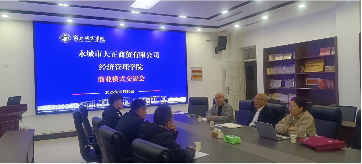 2025年10月20日下午三点,永城市大正商贸有限公司董事长丁铁映等相关领导来中心交流,会议在三商楼经济管理学院研究中心357会议室举行,主要围绕“商丘市310农产品批发市场冷冻食品销售模式的创新与升级”主题开展了深入的交流。此次交流旨在应对当前冻品行业日益激烈的市场竞争,共同探讨企业转型发展的可行路径,并推动校企在人才培养与产业实践方面的深度融合。
