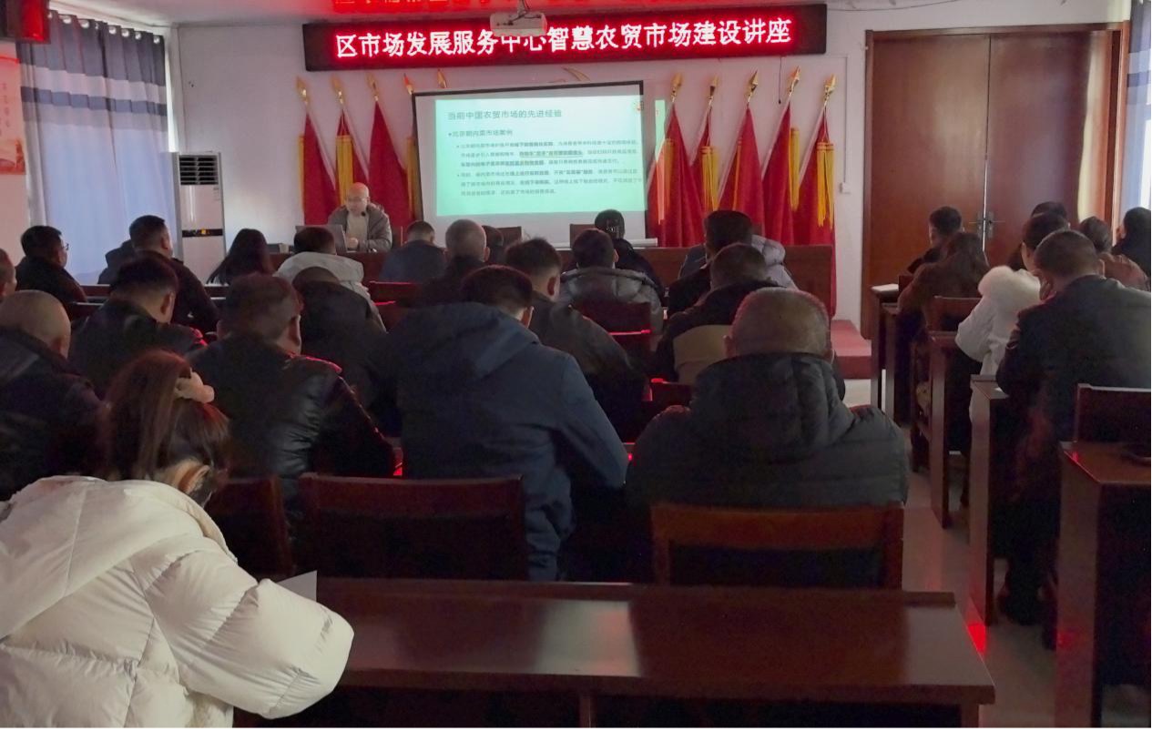 2025年12月16日上午,研究中心高峰博士受睢阳区农业局市场发展中心邀请,作了题为“智慧‘菜篮子’建设商户省心顾客放心”的专题讲座。讲座由市场发展中心主任王媛媛主持,区市场发展中心全体工作人员、9家农贸市场负责人及商户代表共50余人参会。